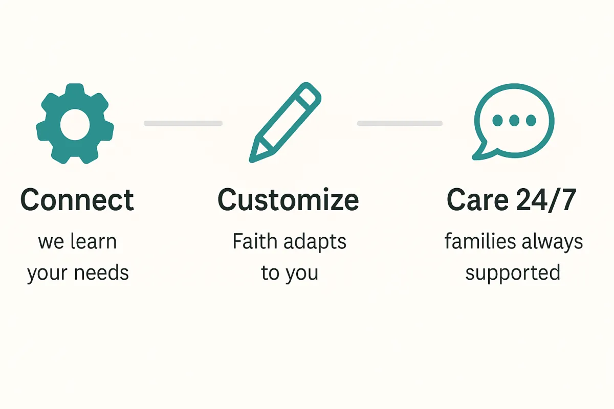 Our Chatbot -Faith, helps you stay available with instant, caring responses that protect your reputation and your peace of mind.
